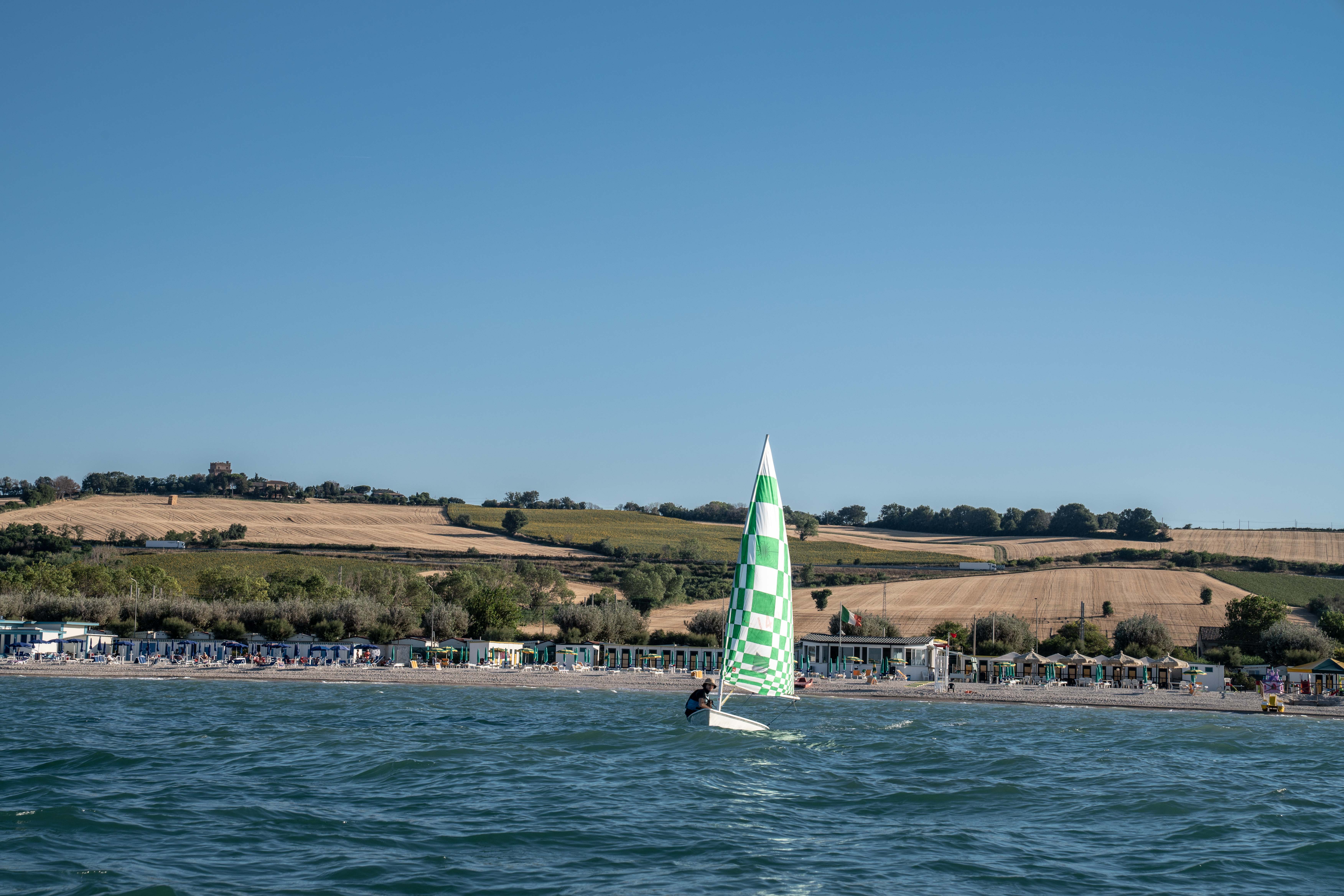 L’artista con questo nuovo progetto si è posto lo stesso obiettivo: attirare lo sguardo delle persone insinuando in loro curiosità. Uscendo in barca per molti giorni consecutivi e navigando davanti al litorale di Marzocca, Oliviero Fiorenzi costruirà quindi una ruotine, e questo continuo veleggiare diventerà un nuovoelemento visivo in movimento inserito nel paesaggio.